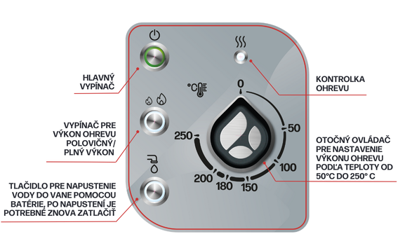Ohrev nastavíme pomocou gombíka s nastavením teploty od 50-250 (300) °C.